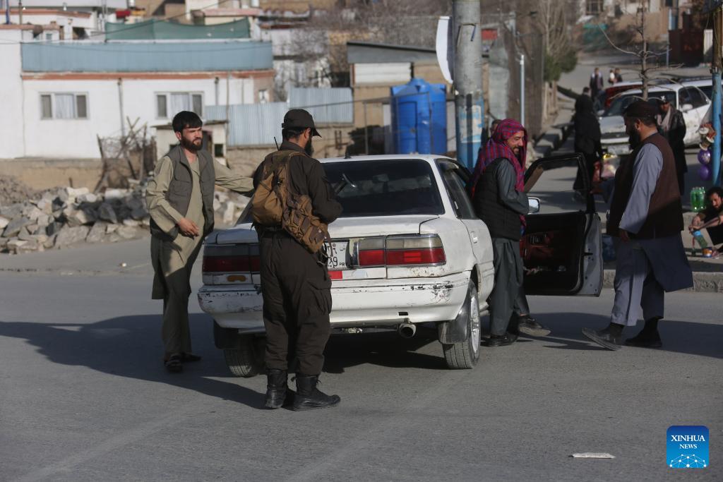 Security personnel inspect vehicles at a temporary checkpoint following airstrikes in Kabul, Afghanistan, Feb. 27, 2026. Zabihullah Mujahid, spokesperson for the Afghan government, posted on his X account early Friday that the Pakistani military conducted airstrikes in parts of Kabul, southern Kandahar, and eastern Paktia province. (Photo: Xinhua)