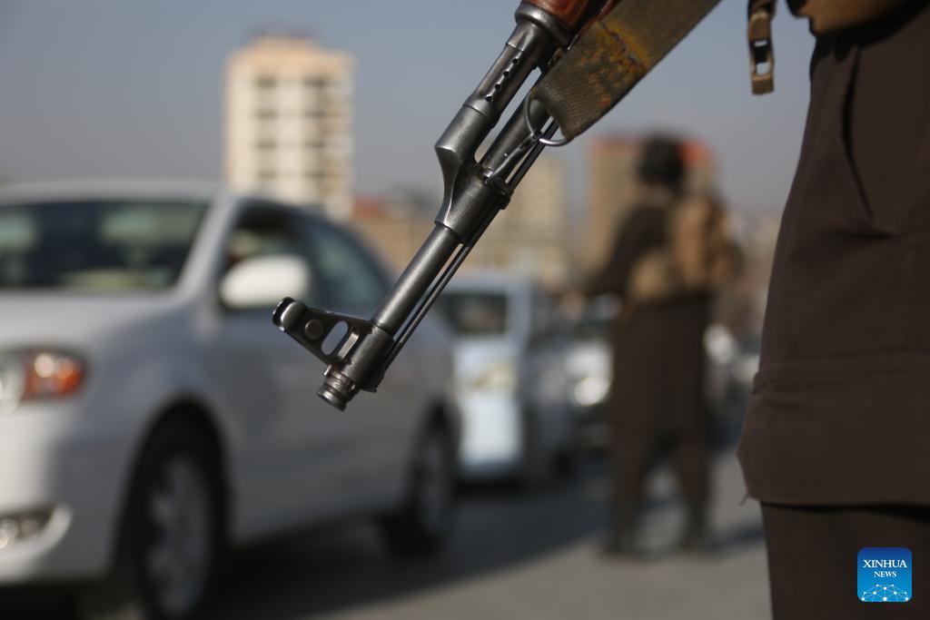 Security personnel stand guard at a road junction following airstrikes in Kabul, Afghanistan, Feb. 27, 2026. Zabihullah Mujahid, spokesperson for the Afghan government, posted on his X account early Friday that the Pakistani military conducted airstrikes in parts of Kabul, southern Kandahar, and eastern Paktia province. (Photo: Xinhua)
