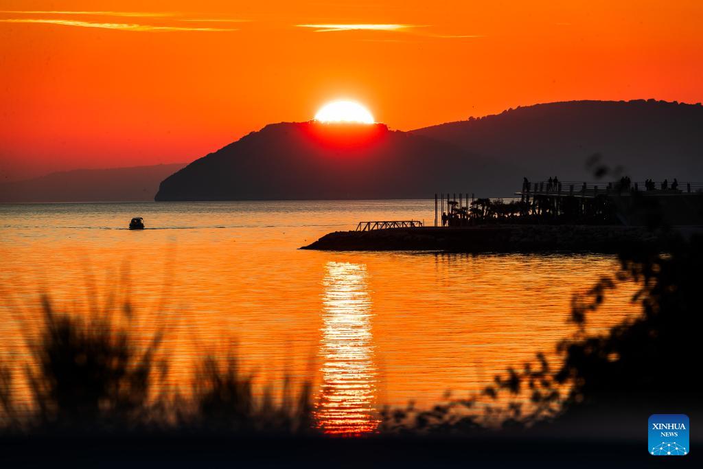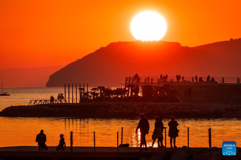 This photo taken on Feb. 27, 2026 shows a sunset view in Znjan, Croatia. (Zvonimir Barisin/PIXSELL via Xinhua)