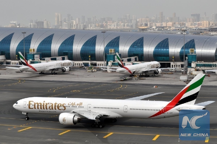 File photo: An Emirates plane taxis to a gate at Dubai International Airport in Dubai, United Arab Emirates, on March 22, 2017. (File photo: AP)