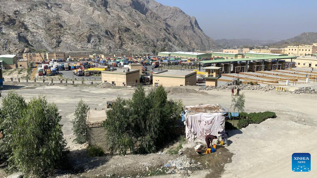Trucks remain stalled at the Pakistan-Afghanistan Torkham border, amid cross-border clashes in northwest Pakistan's Torkham, October 13, 2025. (File photo: Xinhua)