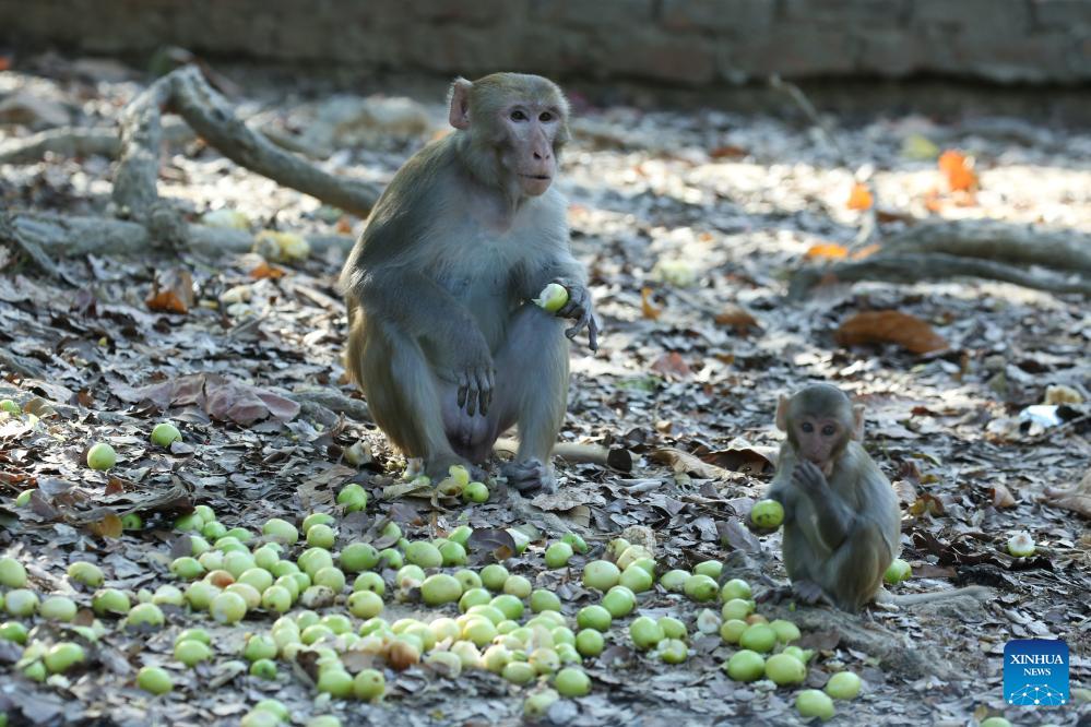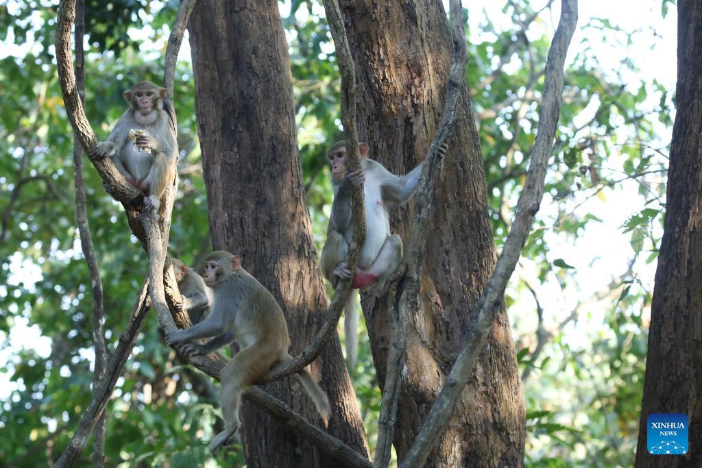 Monkeys are seen at Hlawga Park in Yangon, Myanmar, March 1, 2026. (Xinhua/Myo Kyaw Soe)