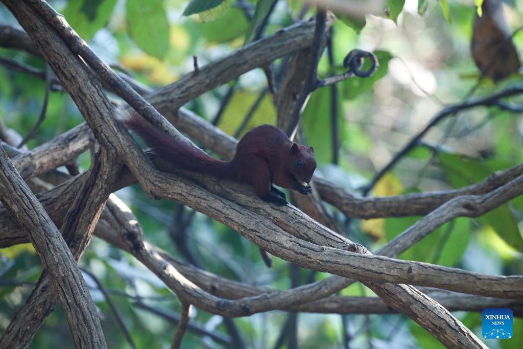 A squirrel is seen at Hlawga Park in Yangon, Myanmar, March 1, 2026. (Xinhua/Myo Kyaw Soe)