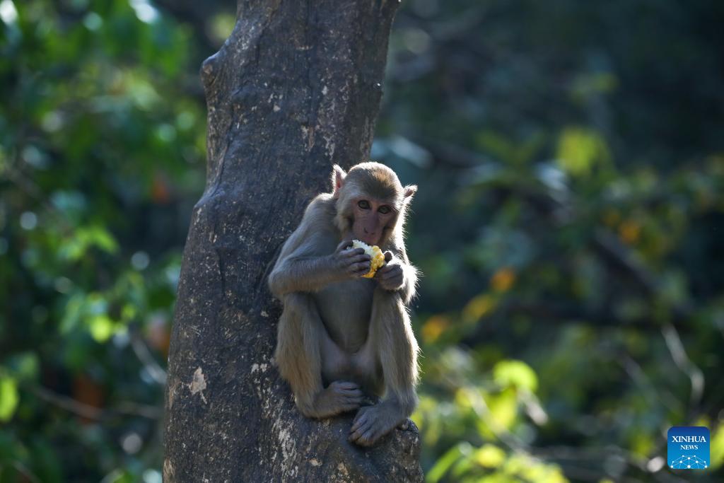 A monkey is seen at Hlawga Park in Yangon, Myanmar, March 1, 2026. (Xinhua/Myo Kyaw Soe)