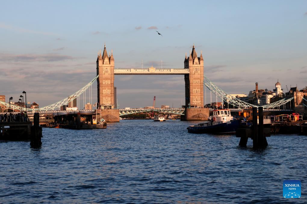Tower Bridge is seen as the sun sets in London, Britain, Aug. 2, 2025. (Photo: Xinhua)