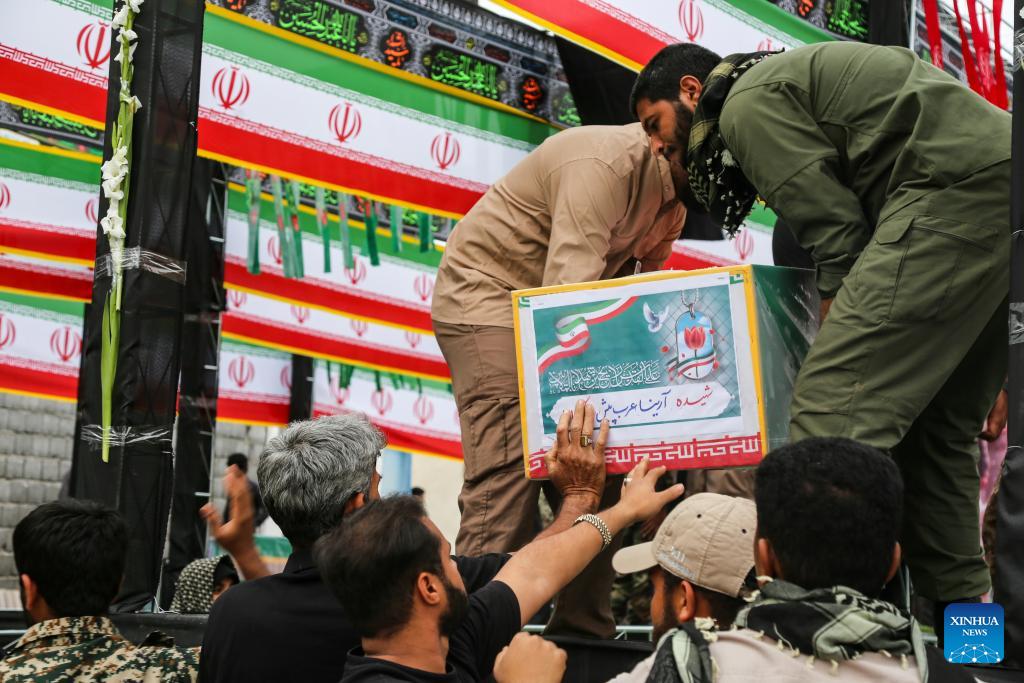 People take part in a mass funeral ceremony for students and staff members killed in a United States-Israeli attack on a school in Minab, Iran's southern province of Hormozgan, March 3, 2026. The school was bombed in Israeli and U.S. strikes, leaving at least 165 people killed and 95 others wounded on Saturday. (Mehr News Agency/Handout via Xinhua)