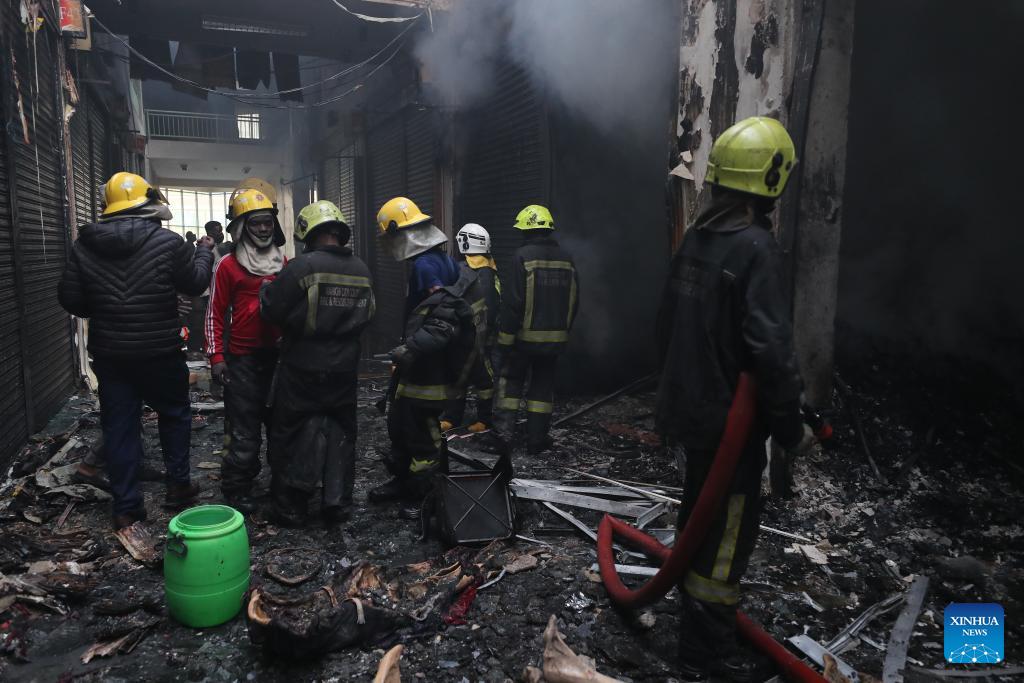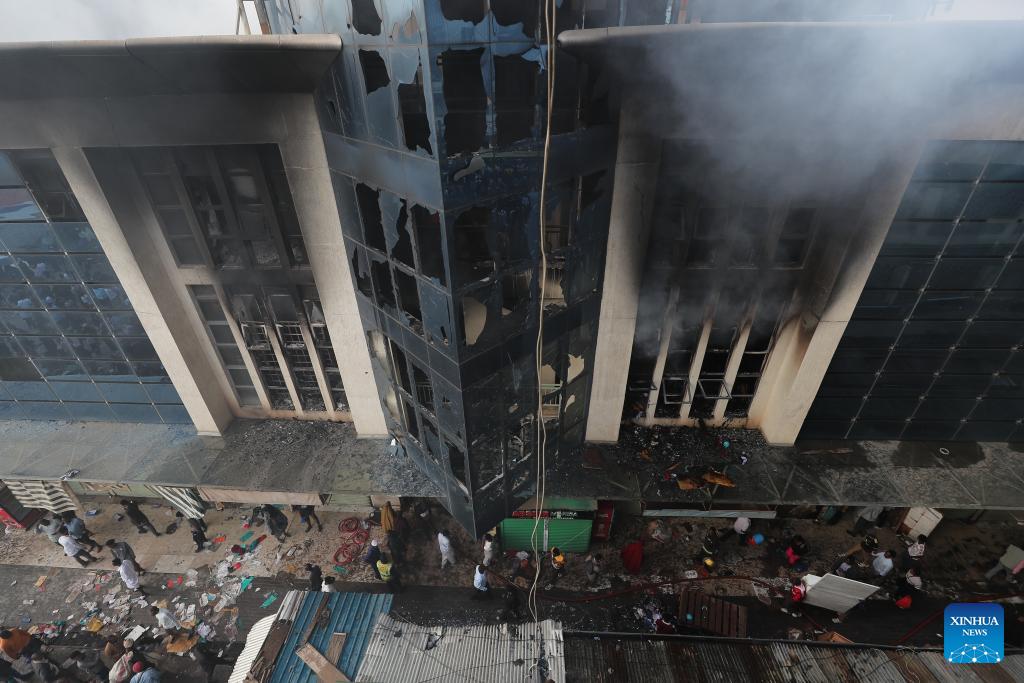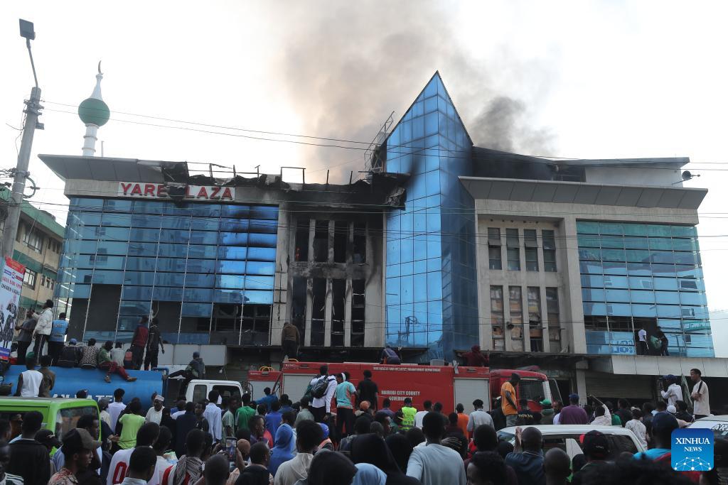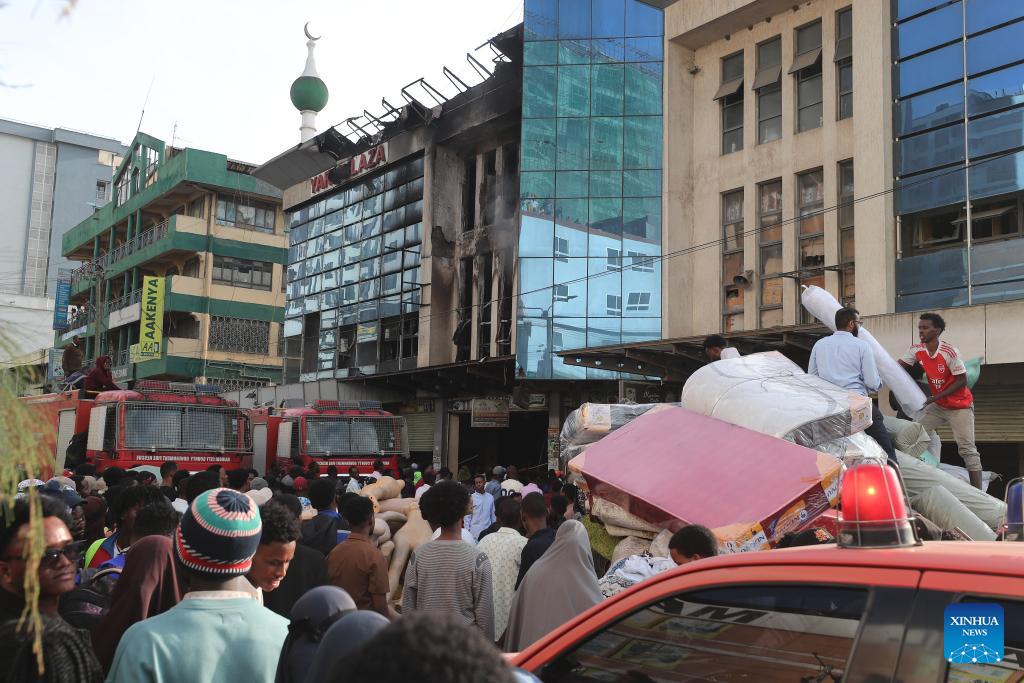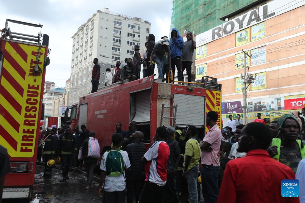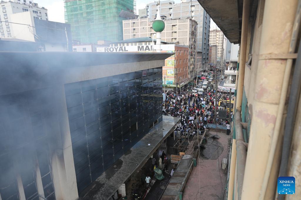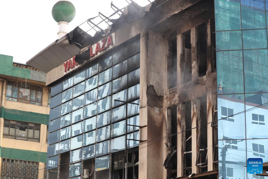 Photo taken on March 3, 2026 shows the scene of a fire at Yare Plaza in Nairobi, capital of Kenya. A fire broke out on Tuesday at Yare Plaza, a place which mainly houses clothing vendors. (Photo by Henry Naminde/Xinhua)