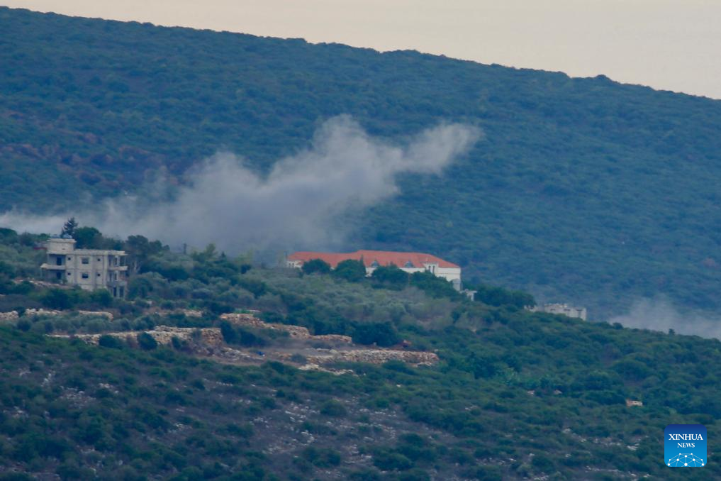 This photo taken on Nov. 12, 2023 shows smoke caused by Israeli artillery shelling in Tayr Harfa, Lebanon. (File photo: Xinhua)
