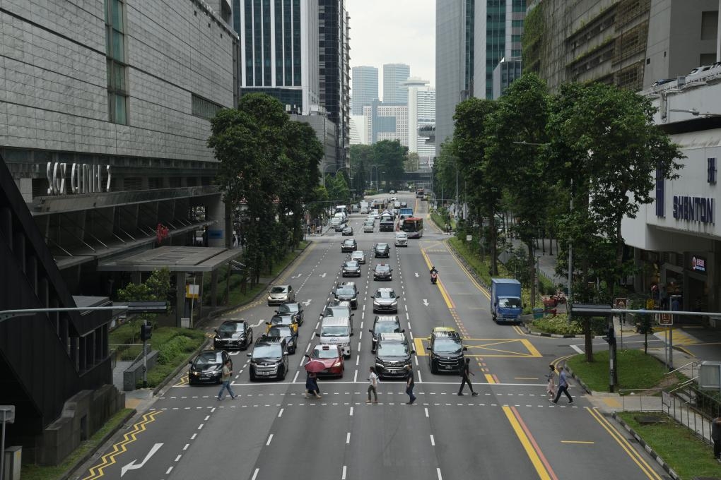 People walk across the road in the financial business district of Singapore, April 14, 2025. (File photo: Xinhua)