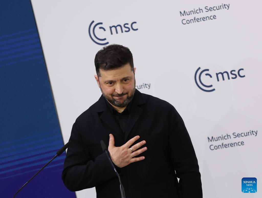 Ukrainian President Volodymyr Zelensky greets the audience after his speech during the 62nd Munich Security Conference (MSC) in Munich, Germany, Feb. 14, 2026. (File photo: Xinhua)
