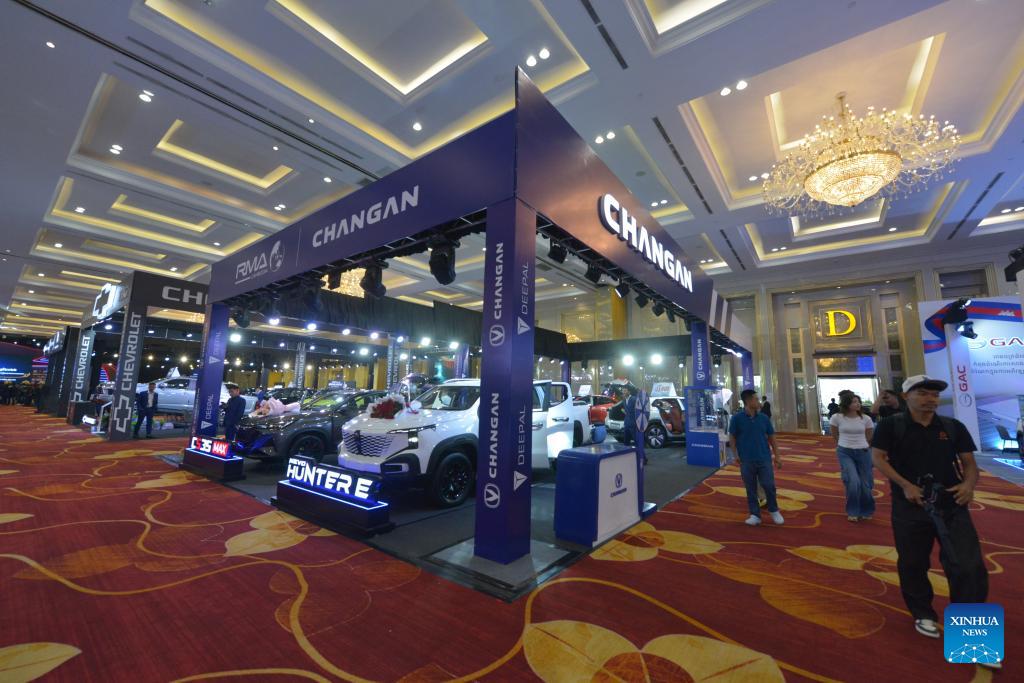Changan cars are on display at an auto show in Phnom Penh, Cambodia, on March 6, 2026. A number of Chinese auto brands such as BYD, Forthing, Changan, GAC and Jetour were on display at an auto show in the capital of Cambodia on Friday, attracting crowds of visitors. (Photo by Phearum/Xinhua)