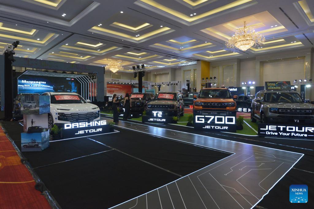 Jetour cars are on display at an auto show in Phnom Penh, Cambodia, on March 6, 2026. A number of Chinese auto brands such as BYD, Forthing, Changan, GAC and Jetour were on display at an auto show in the capital of Cambodia on Friday, attracting crowds of visitors. (Photo by Phearum/Xinhua)
