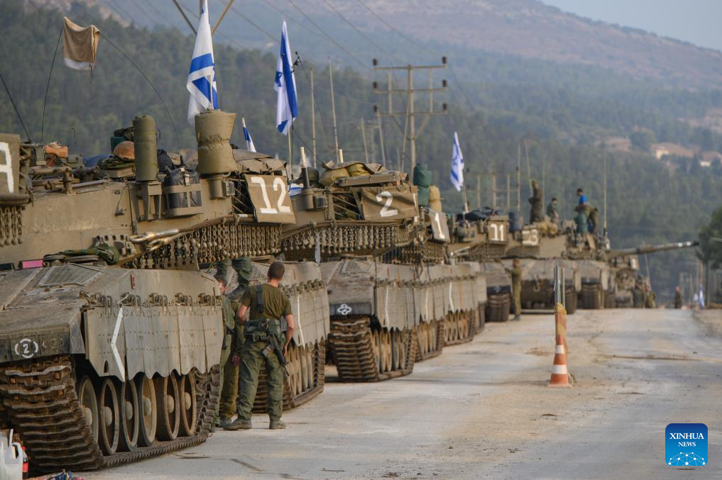 This photo taken on Oct. 11, 2023 shows Israeli army deployed in Upper Galilee of northern Israel. (Photo: Xinhua)
