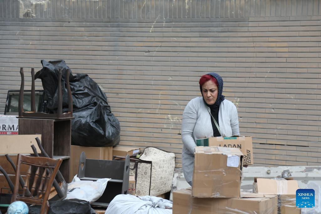 A woman sorts belongings searched from destroyed houses in Tehran, Iran, March 12, 2026. (Xinhua/Shadati)