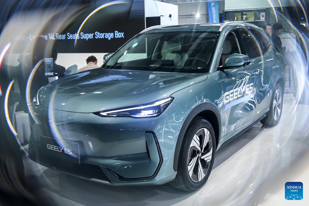 This photo taken on March 13, 2026 shows a car at a booth of Chinese car brand Geely during the International Automobile and Tuning Show in Budapest, Hungary. The International Automobile and Tuning Show kicked off on Friday, with the participation of several Chinese car brands. (Photo by David Balog/Xinhua)