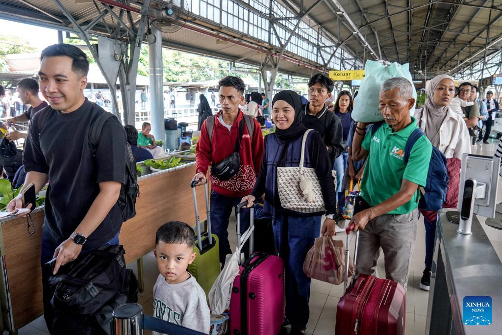 Passengers prepare to depart for hometowns by train ahead of Eid al-Fitr at Pasar Senen train station in Jakarta, Indonesia, March 15, 2026. (Photo by B. Nugraha/Xinhua)