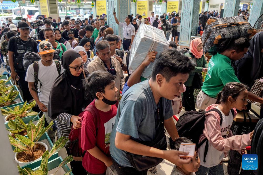 People depart for hometowns ahead of Eid al-Fitr in Jakarta, Indonesia