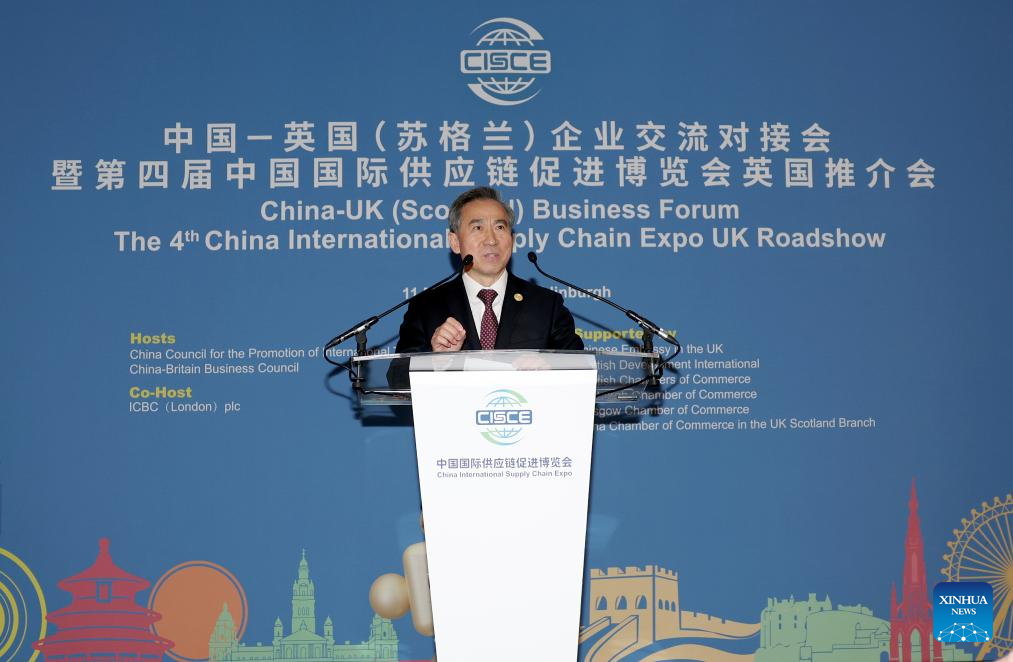EDINBURGH, Britain, March 12 (Xinhua) - A China-UK (Scotland) business forum and the UK roadshow for the 4th China International Supply Chain Expo (CISCE) was held in Edinburgh on Wednesday evening, bringing together more than 100 representatives from government, industry and academia to explore opportunities for closer cooperation.