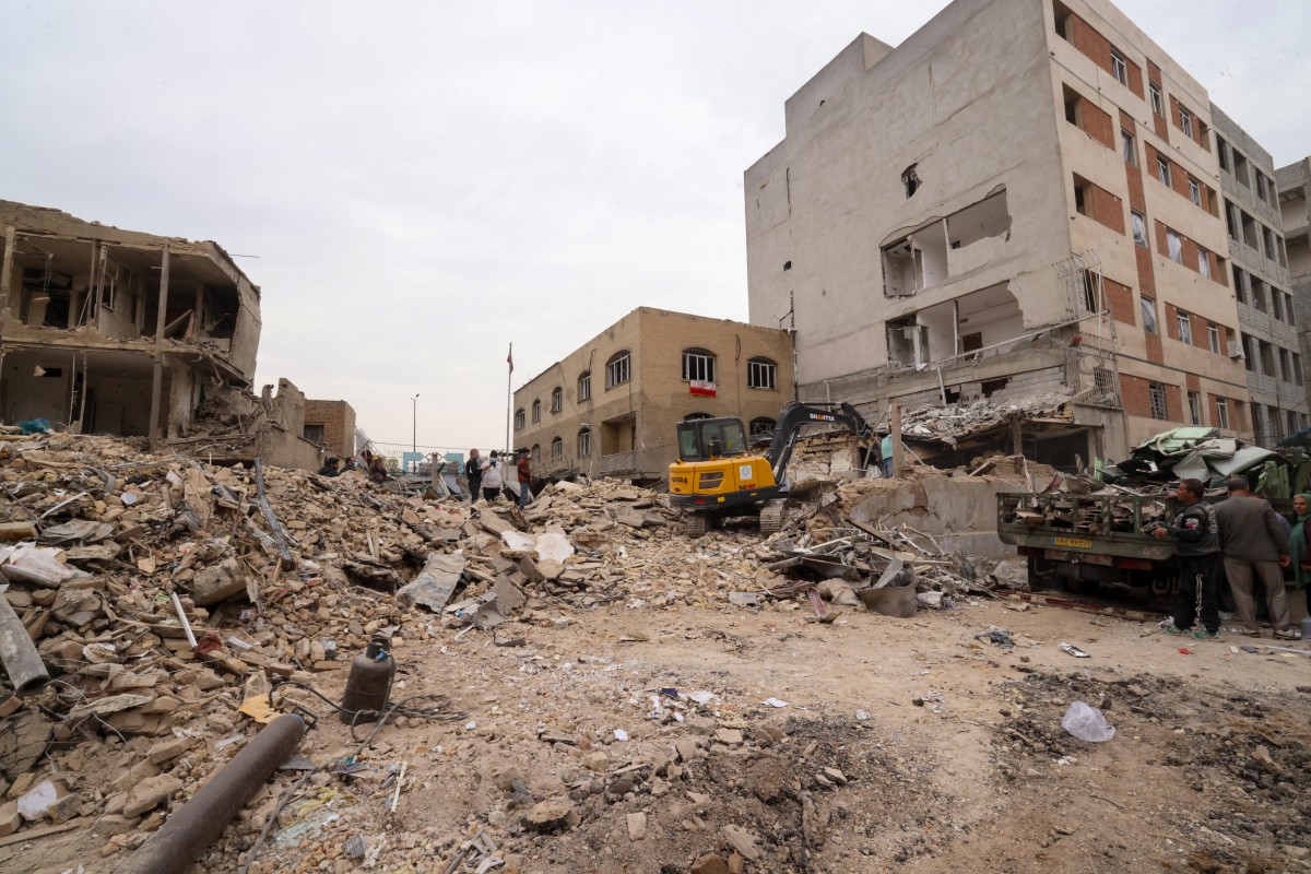 A digger removes the debris following damage to a residential building, following a military strike on the Iranian capital Tehran on March 15, 2026. (File photo: AFP)