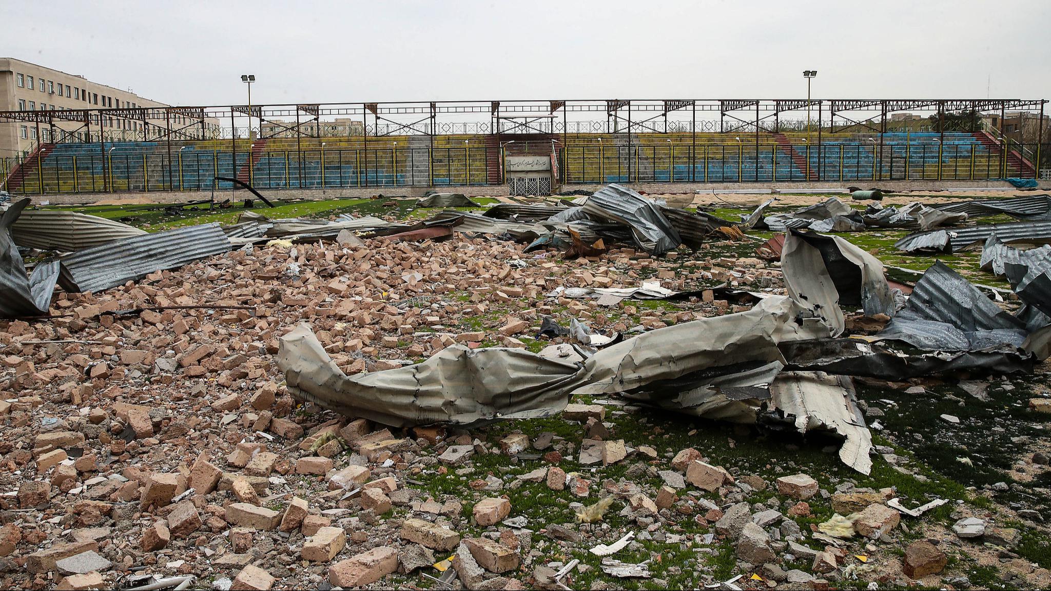 A general view of the destruction at the Shohadan-e Esmaeili Sports Complex, which was targeted by US and Israeli airstrikes, Tehran, March 17, 2026. (Photo: VCG)