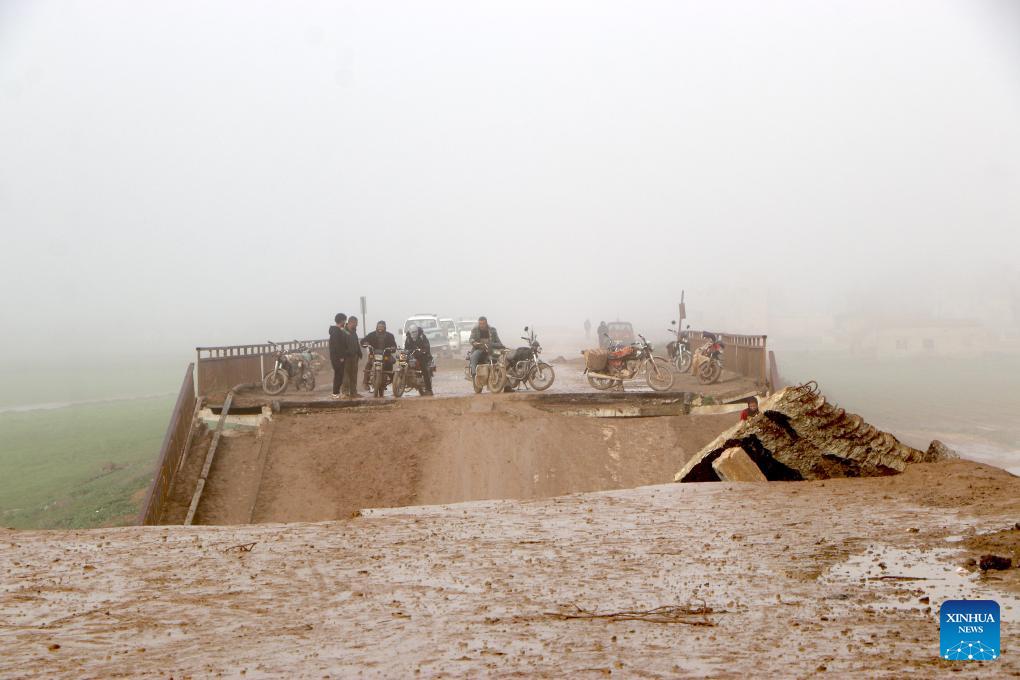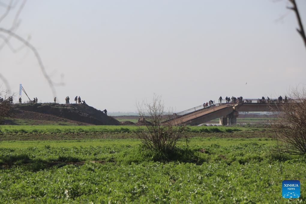 A collapsed bridge over the Khabur River is seen in Hasakah, Syria, on March 17, 2026. Heavy rainfall caused the overflow of Khabur River, affecting several neighborhoods in Hasakah. (Str/Xinhua)