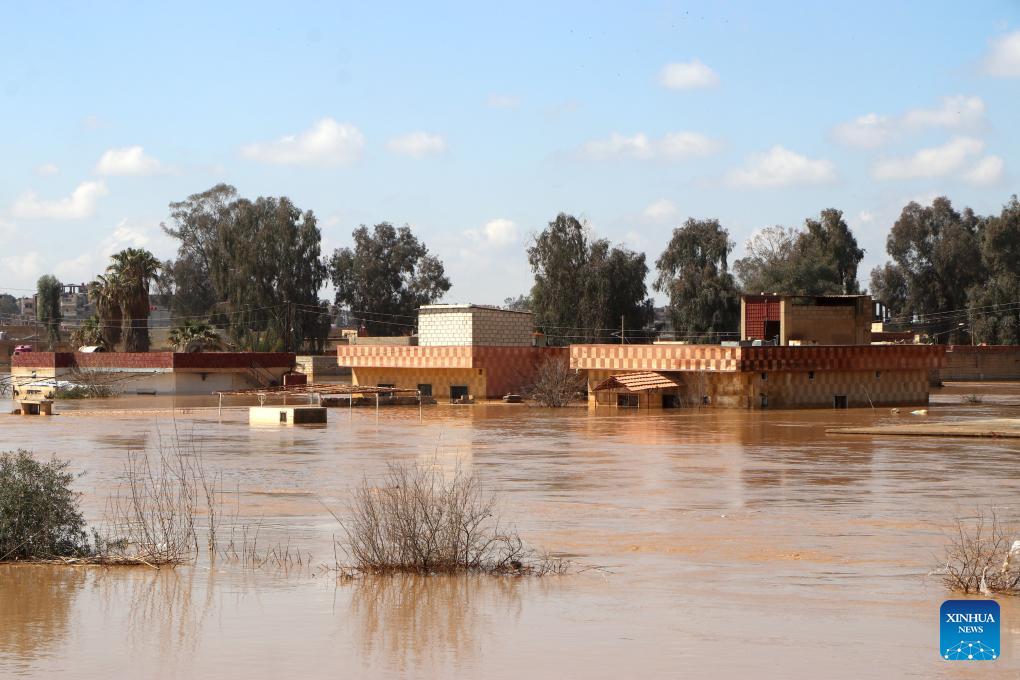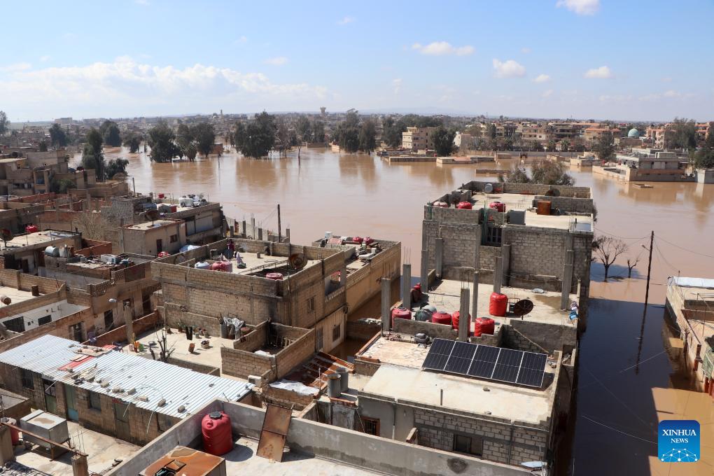 Flooded houses are seen in Hasakah, Syria, on March 17, 2026. Heavy rainfall caused the overflow of Khabur River, affecting several neighborhoods in Hasakah. (Str/Xinhua)