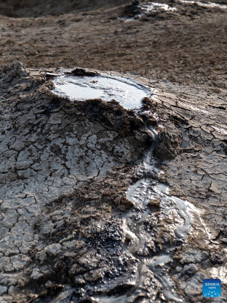 Mud volcanoes are geothermal phenomena created by geo-excreted liquids and gases. Most of the gas released from mud volcanoes is methane while the ejected material is often a slurry of fine solids suspended in liquids that may include water and hydrocarbon fluids. (Xinhua/Chen Junfeng)