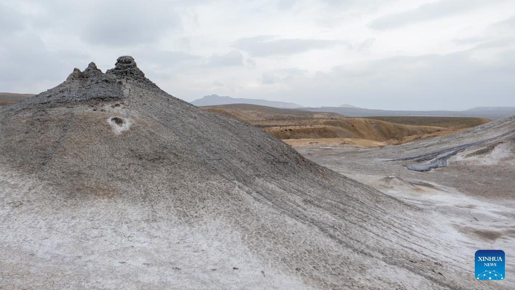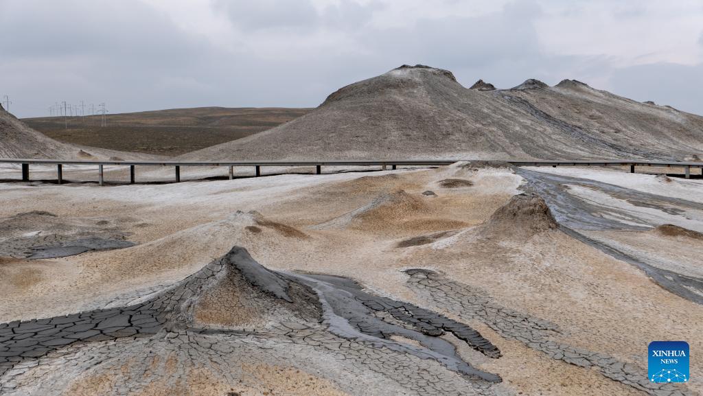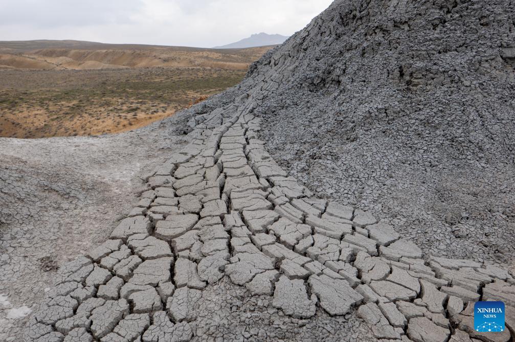 This photo taken on March 17, 2026 shows a view of mud Volcanoes in Absheron District in Azerbaijan.