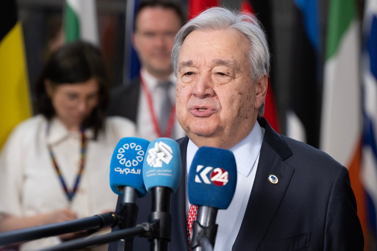 Secretary-General of the United Nations António Guterres speaks to press as he arrives for the EU Summit at the EU headquarters in Brussels, on March 19, 2026. (Photo: AFP)