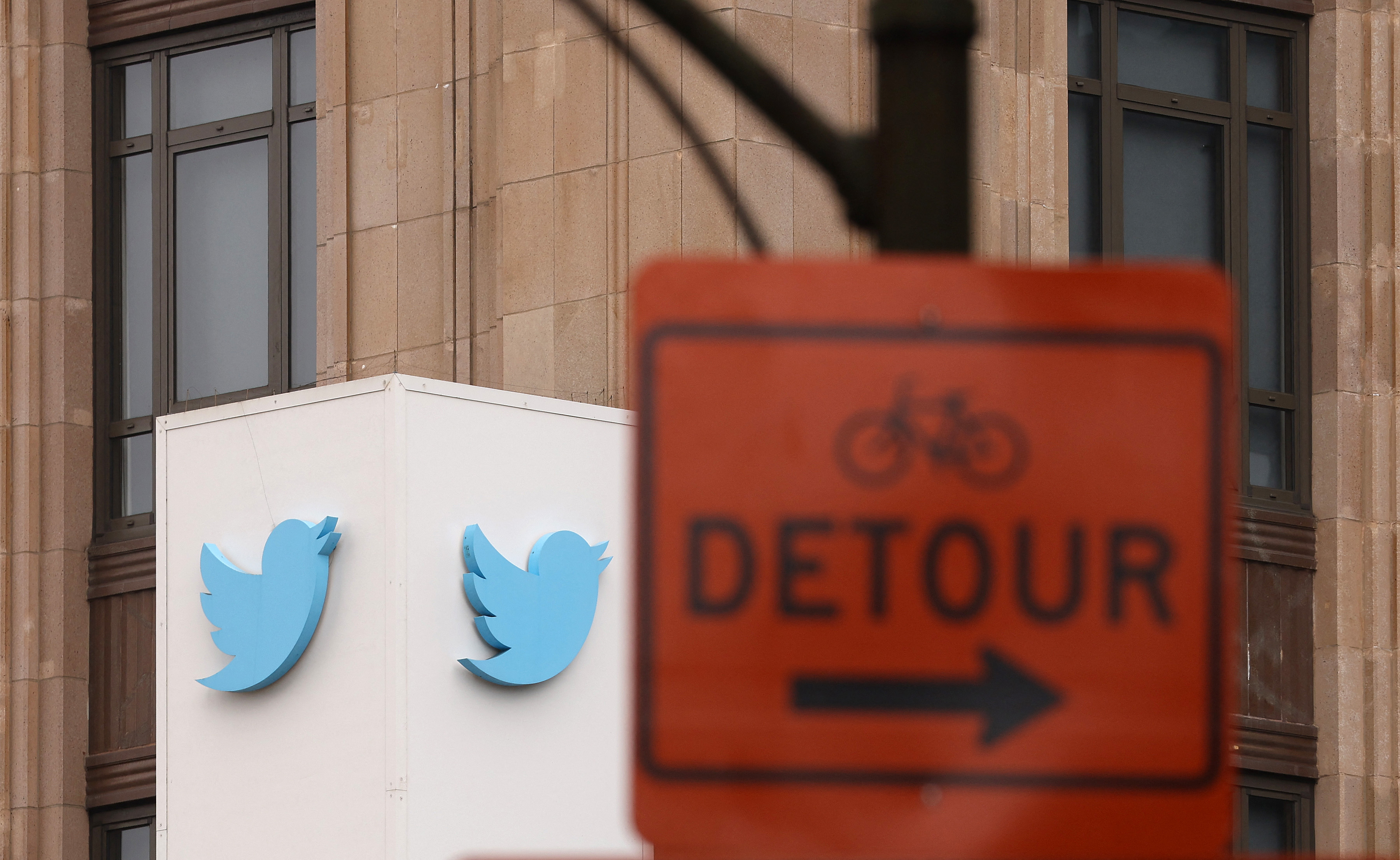 A sign with the Twitter 'bird' logo is posted on the exterior of Twitter headquarters on July 24, 2023 in San Francisco, California. (Photo: AFP)