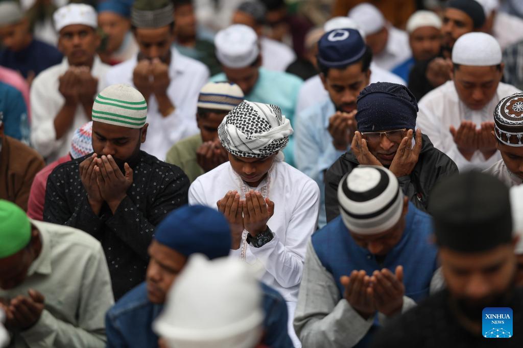 Devotees offer Eid al-Fitr prayers at a mosque in Kathmandu, Nepal, March 21, 2026. (Photo by Sulav Shrestha/Xinhua)