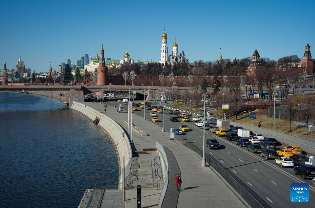 People walk by the Moscow River in Moscow, Russia, March 18, 2025. (Photo: Xinhua)