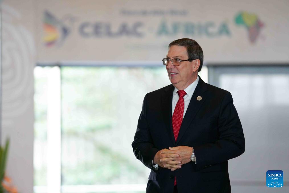 Cuban Foreign Minister Bruno Rodriguez Parrilla walks into the venue of the 10th summit of the Community of Latin American and Caribbean States (CELAC) in Bogota, Colombia, March 21, 2026. The 10th summit of the CELAC opened Saturday in Bogota. (Photo by Andres Moreno/Xinhua)