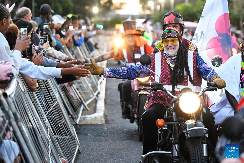 People take part in a parade during the Cape Town Carnival 2026 in Cape Town, South Africa, March 21, 2026. The annual Cape Town Carnival kicked off here on Saturday evening. (Photo by Xabiso Mkhabela/Xinhua)