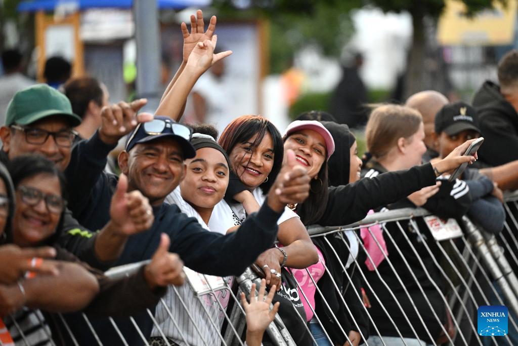 People watch a parade during the Cape Town Carnival 2026 in Cape Town, South Africa, March 21, 2026. The annual Cape Town Carnival kicked off here on Saturday evening. (Photo by Xabiso Mkhabela/Xinhua)