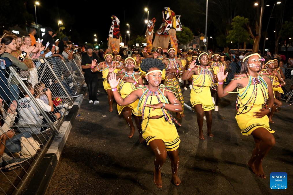 Performers parade during the Cape Town Carnival 2026 in Cape Town, South Africa, on March 21, 2026. The annual Cape Town Carnival kicked off here on Saturday evening. (Photo by Xabiso Mkhabela/Xinhua)