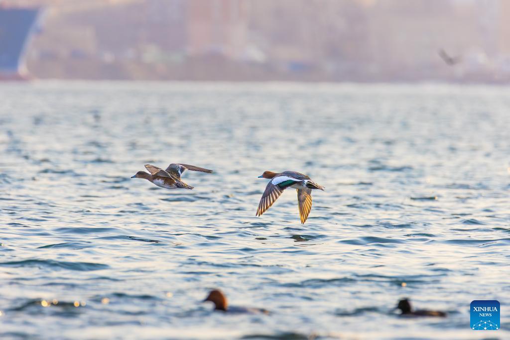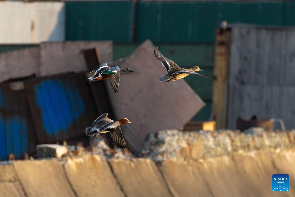 Waterfowl are pictured in Vladivostok, Russia, March 21, 2026. (Photo by Andrey Matveenko/Xinhua)