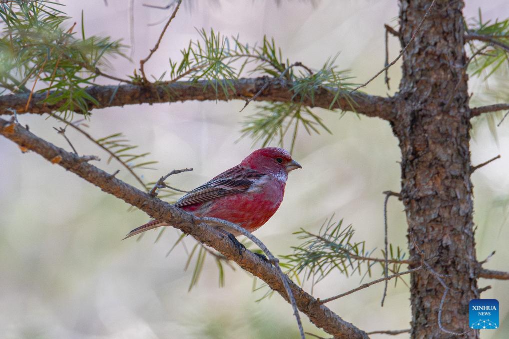 A rosefinch is pictured in Vladivostok, Russia, March 21, 2026. (Photo by Andrey Matveenko/Xinhua)