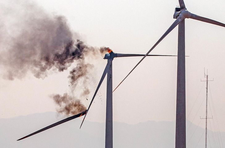 The blaze broke out at about 1:11 p.m. local time (0411 GMT) at the wind turbine within a wind farm in Yeongdeok county, some 350 km southeast of the capital Seoul, spreading to a nearby mountain.