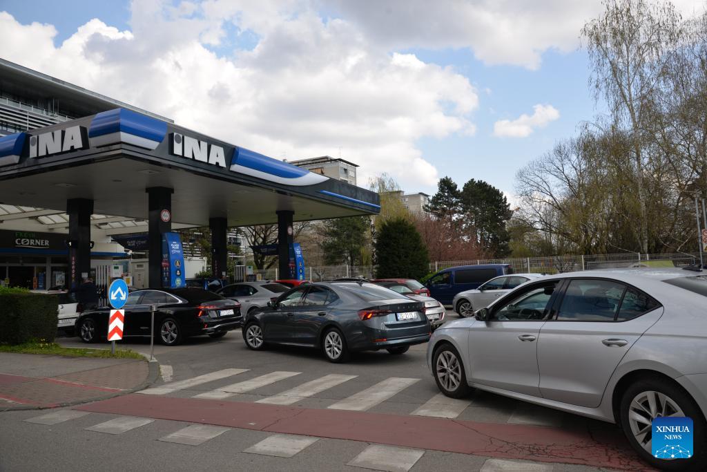 Photo taken on March 23, 2026 shows a gas station in Zagreb, Croatia. The Croatian government has decided to extend a fuel price cap for another two weeks amid rising prices linked to the situation in the Middle East, Prime Minister Andrej Plenkovic said on Monday during a government session. (Photo: Xinhua)