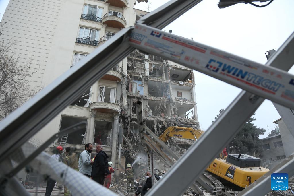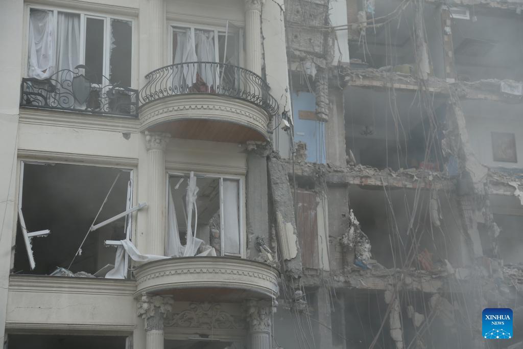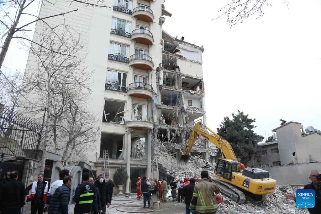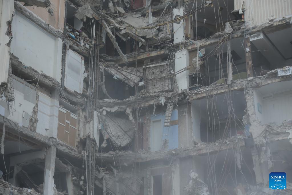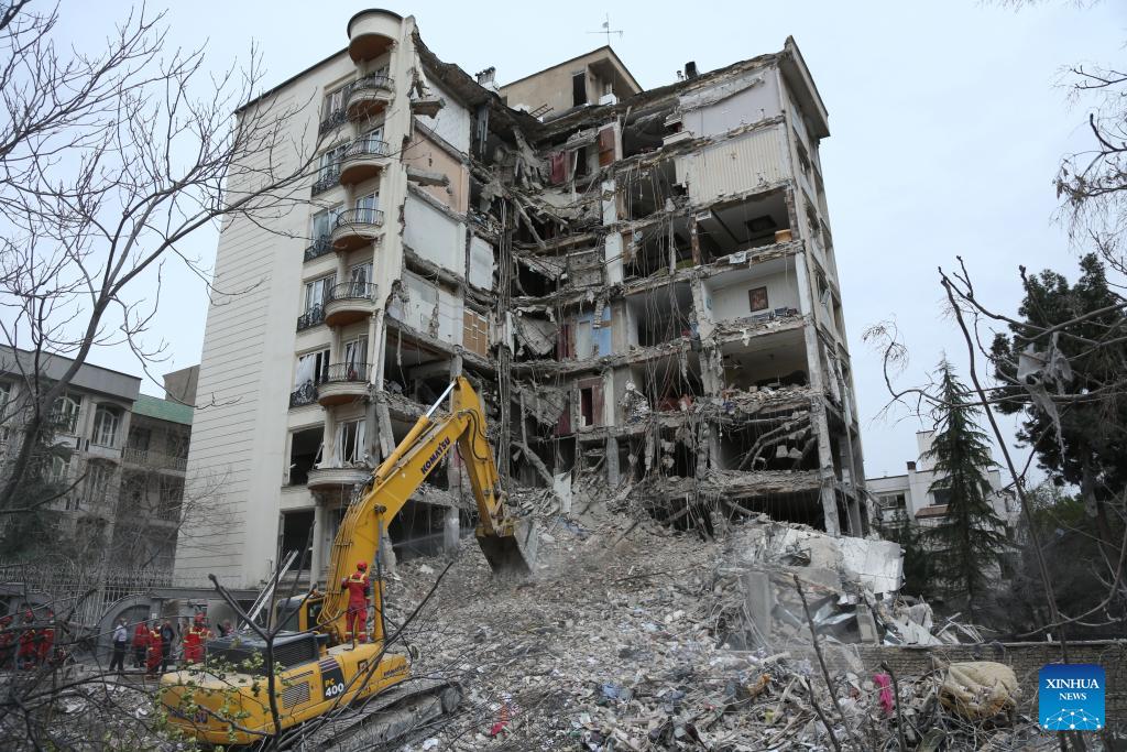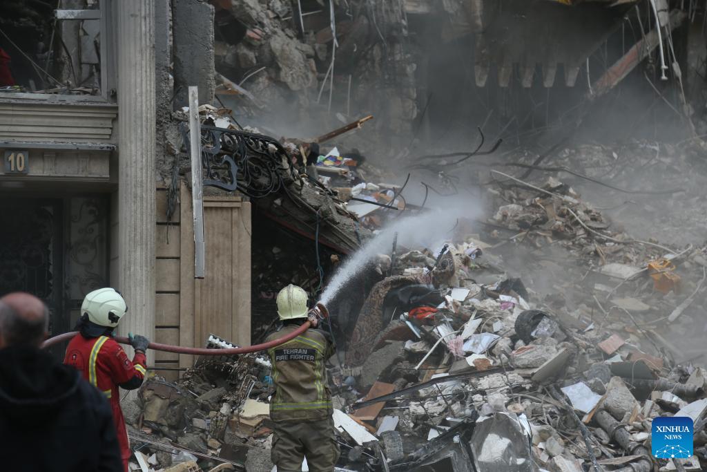 This photo taken on March 23, 2026 shows a destroyed building in a residential area after joint US-Israeli strikes on Iran in Tehran, Iran. (Photo: Xinhua)