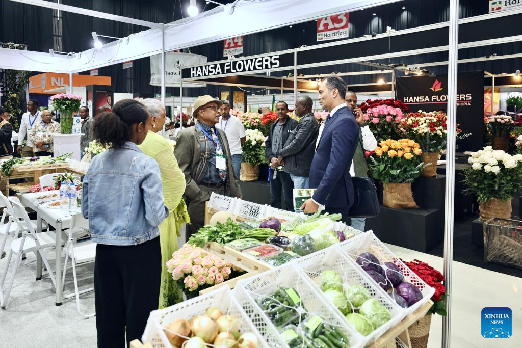 Exhibits are on display during the 10th edition of the International Floriculture and Horticulture Trade Fair in Addis Ababa, Ethiopia, March 24, 2026. The 10th edition of the International Floriculture and Horticulture Trade Fair kicked off on Tuesday in Addis Ababa, the capital of Ethiopia, with a call to boost the export of horticultural products. (Photo: Xinhua)