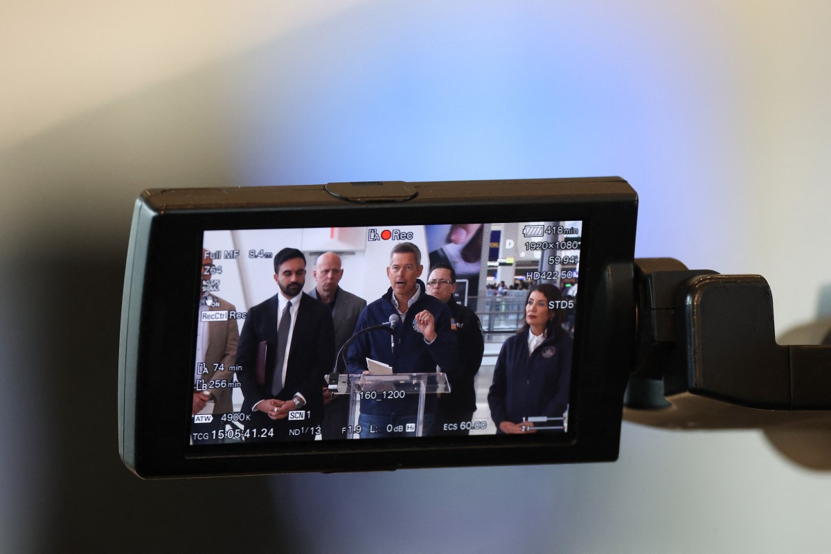 New York City Mayor Zohran Mamdani (L), and New York Governor Kathy Hochul (R) look on as US Secretary of Transportation Sean Duffy (R) speaks to the press at LaGuardia Airport in New York, on March 23, 2026. (Photo: AFP)