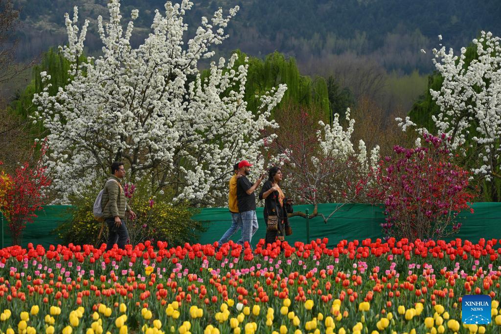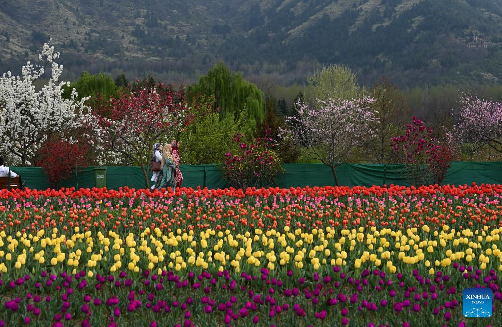 Tourists stroll through a blooming tulip garden in Srinagar, the summer capital of Indian-controlled Kashmir, March 25, 2026. (Xinhua/Javed Dar)