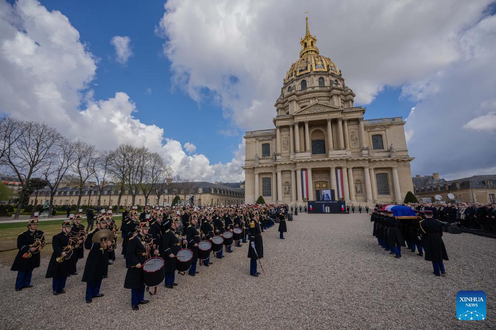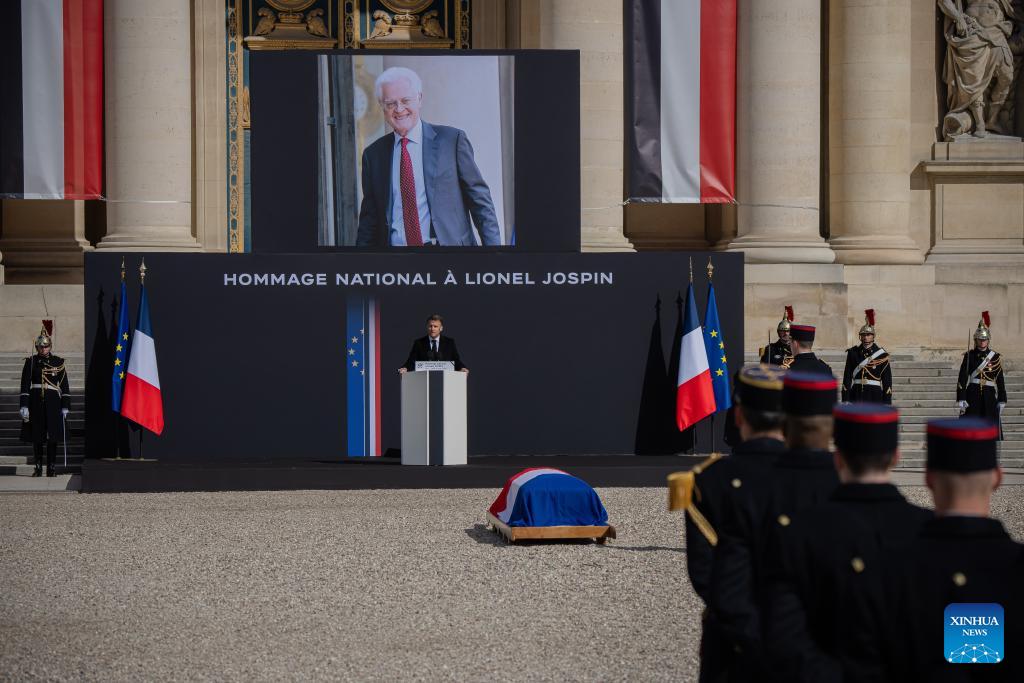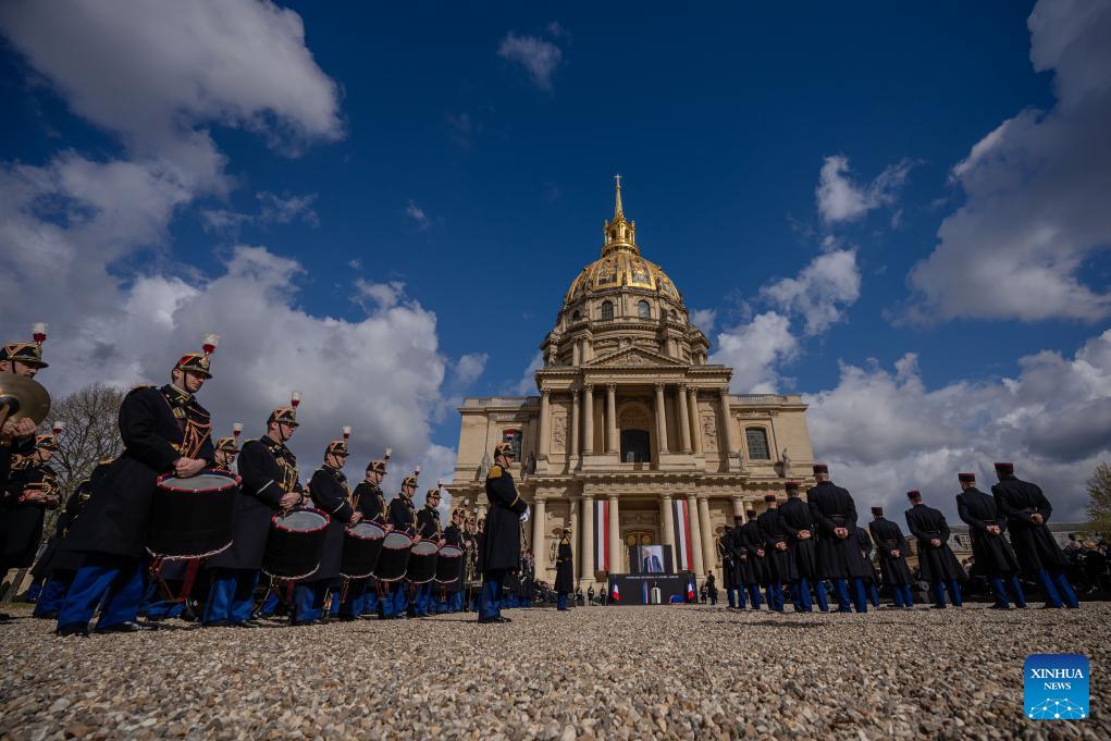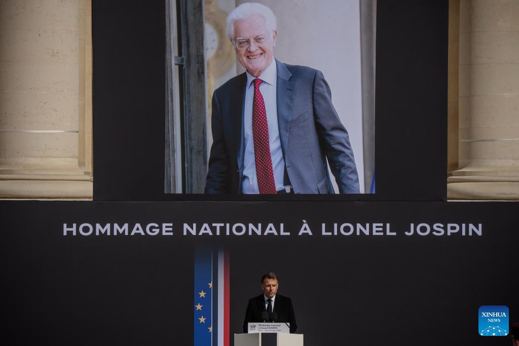 This photo taken on March 26, 2026 shows a national tribute ceremony to former French Prime Minister Lionel Jospin at the Invalides in Paris, France. Former French Prime Minister Lionel Jospin died last Sunday at the age of 88. (Photo by Aurelien Morissard/Xinhua)