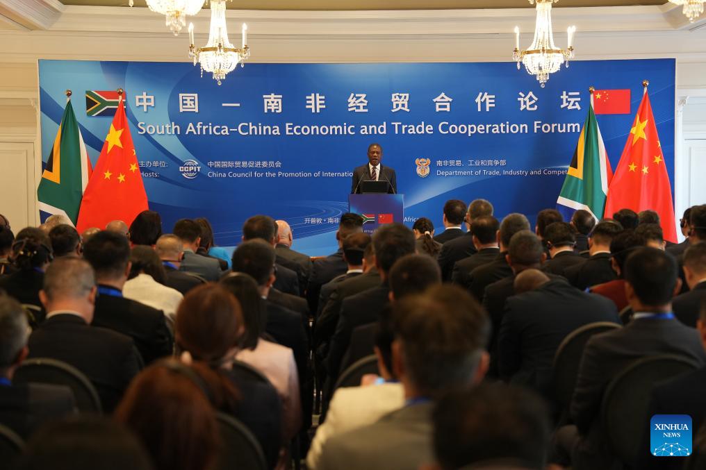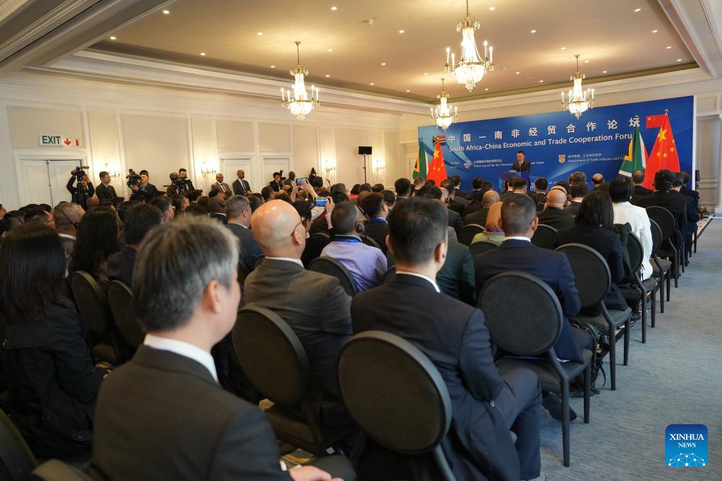 The forum was held in Cape Town on Friday, with companies from both sides engaging in talks on cooperation in sectors, including agriculture, manufacturing, energy and mining, finance, automobiles, and logistics. (Xinhua/Wang Lei)