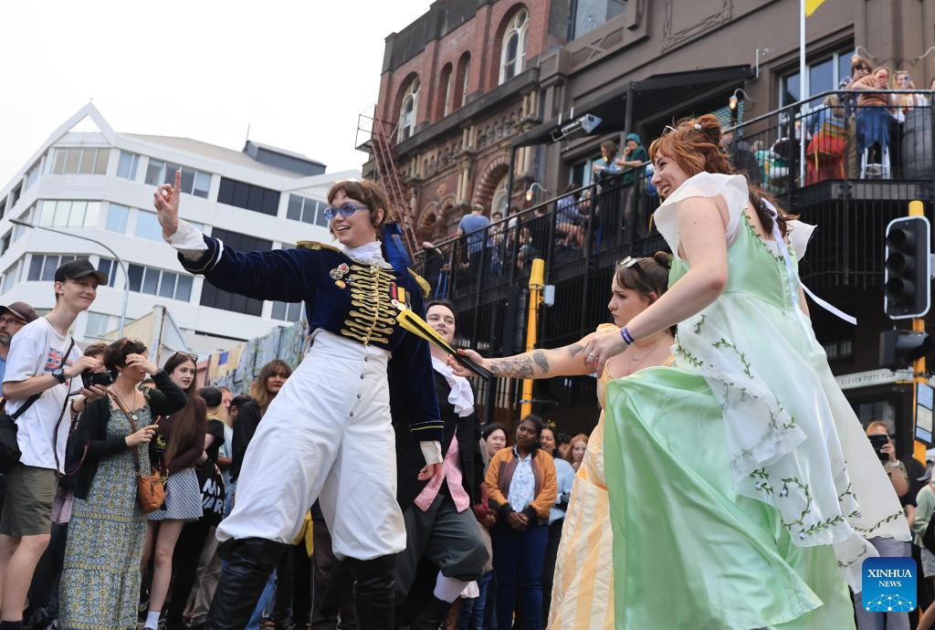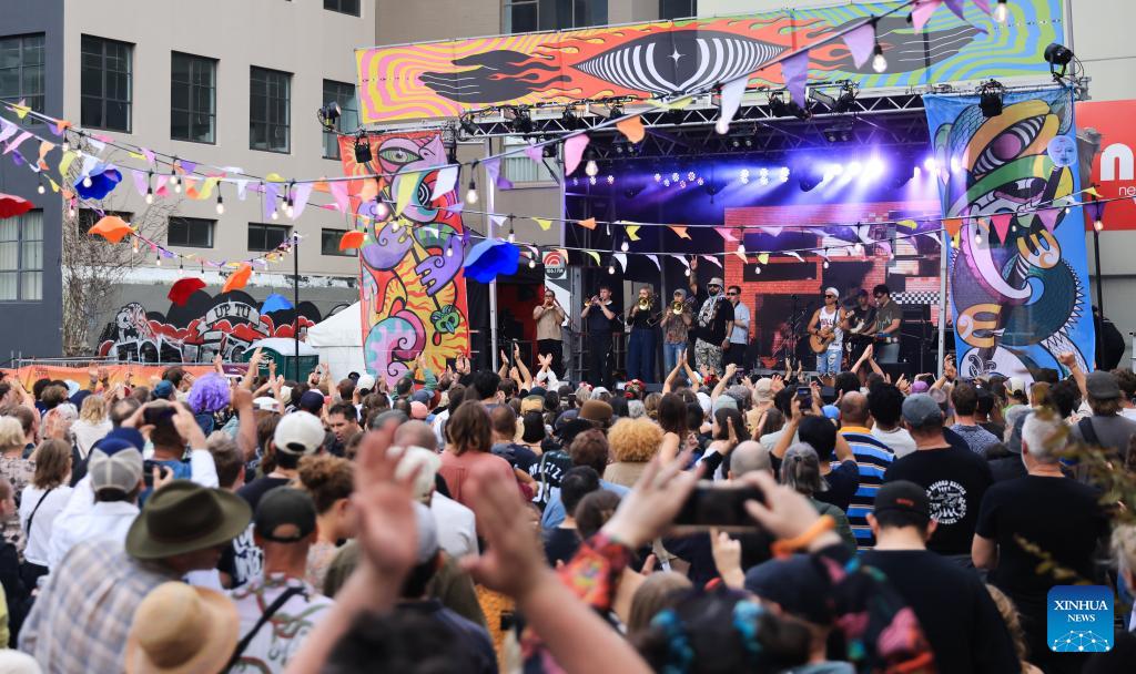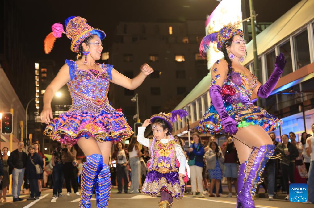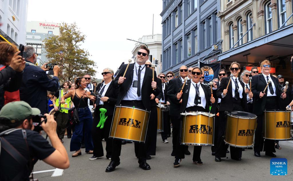 People perform during CubaDupa Festival in Wellington, New Zealand, March 28, 2026. (Photo by Meng Tao/Xinhua)