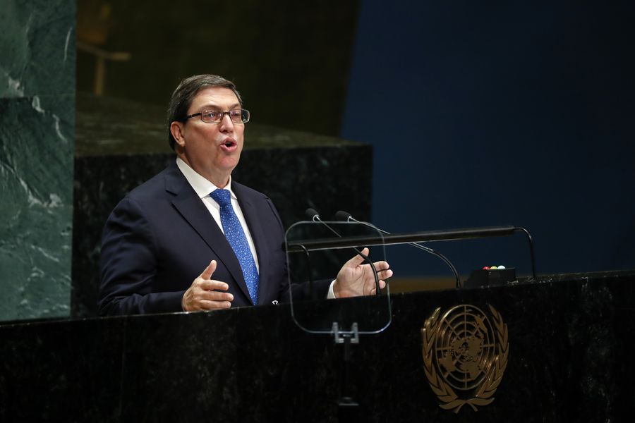 Cuban Foreign Minister Bruno Rodriguez Parrilla addresses the General Debate of the 74th session of the UN General Assembly at the UN headquarters in New York, on Sept. 28, 2019. (Xinhua/Li Muzi)