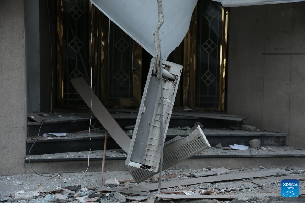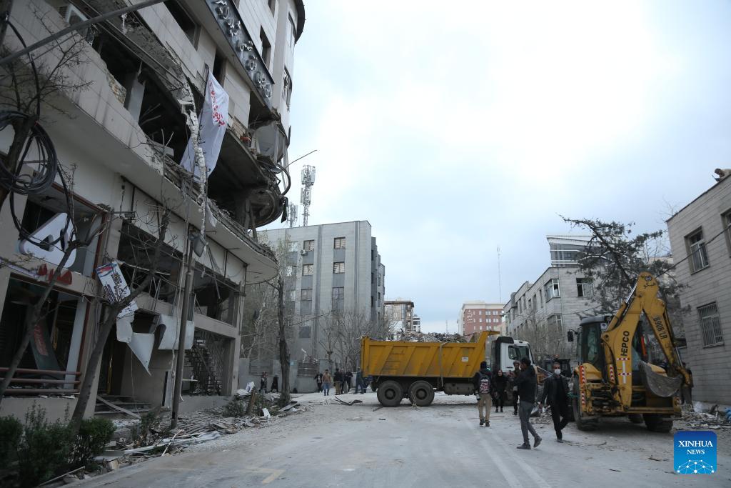 This photo shows a damaged building after joint U.S.-Israeli strikes in Tehran, Iran on March 29, 2026. (Xinhua/Shadati)