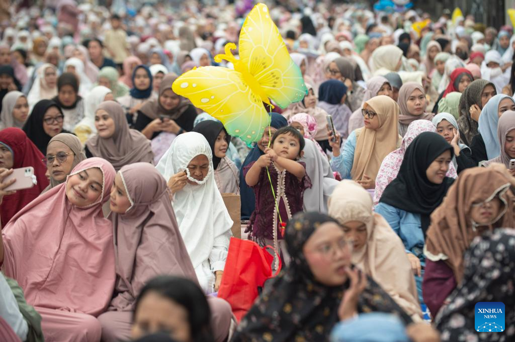 People gather before performing Eid al-Fitr prayers in Jakarta, Indonesia, on March 21, 2026. (Photo: Xinhua)